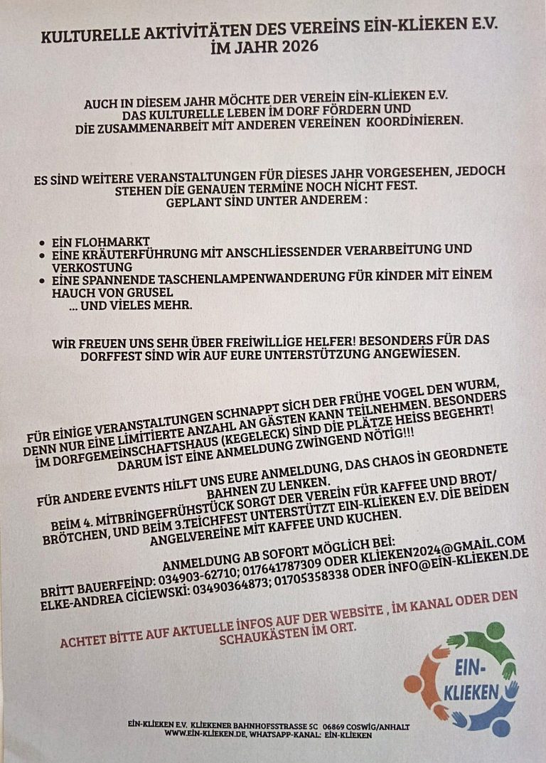 Nutzen Sie unseren "Kanal" EIN-KLIEKEN e.V. bei WhatsApp und natürlich diese Internetseite.
