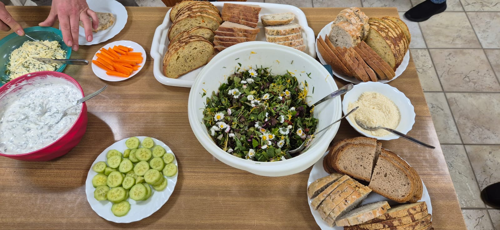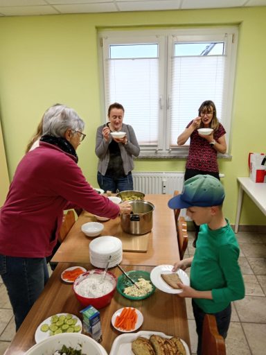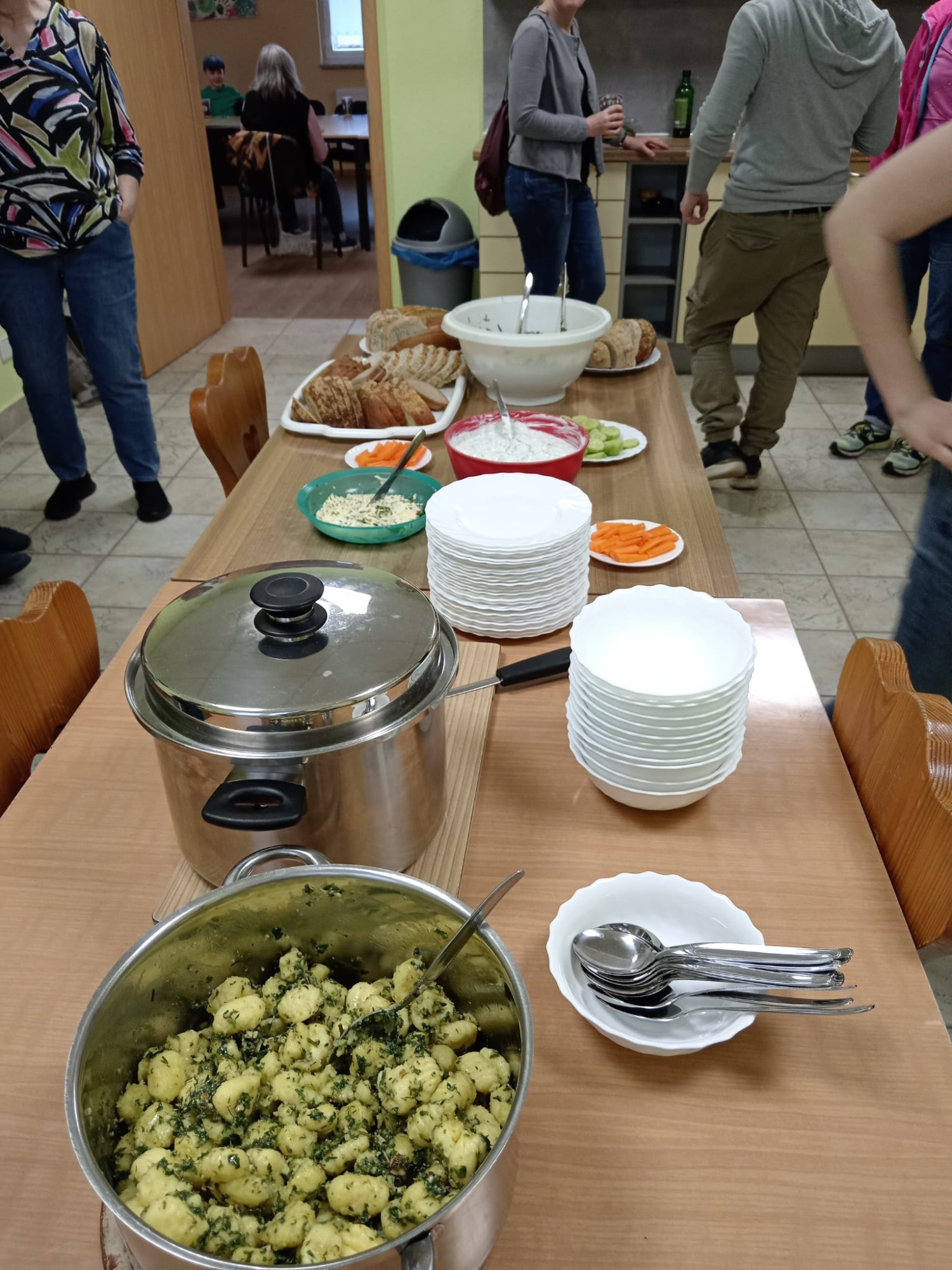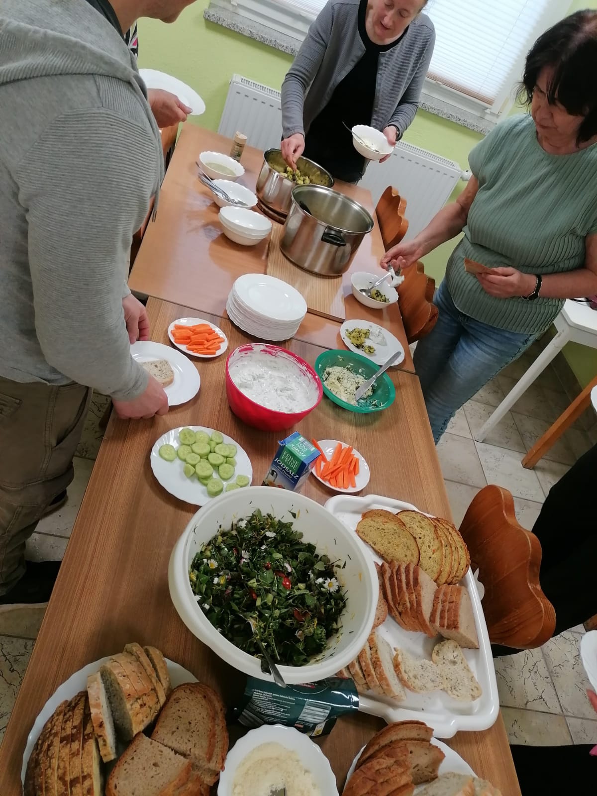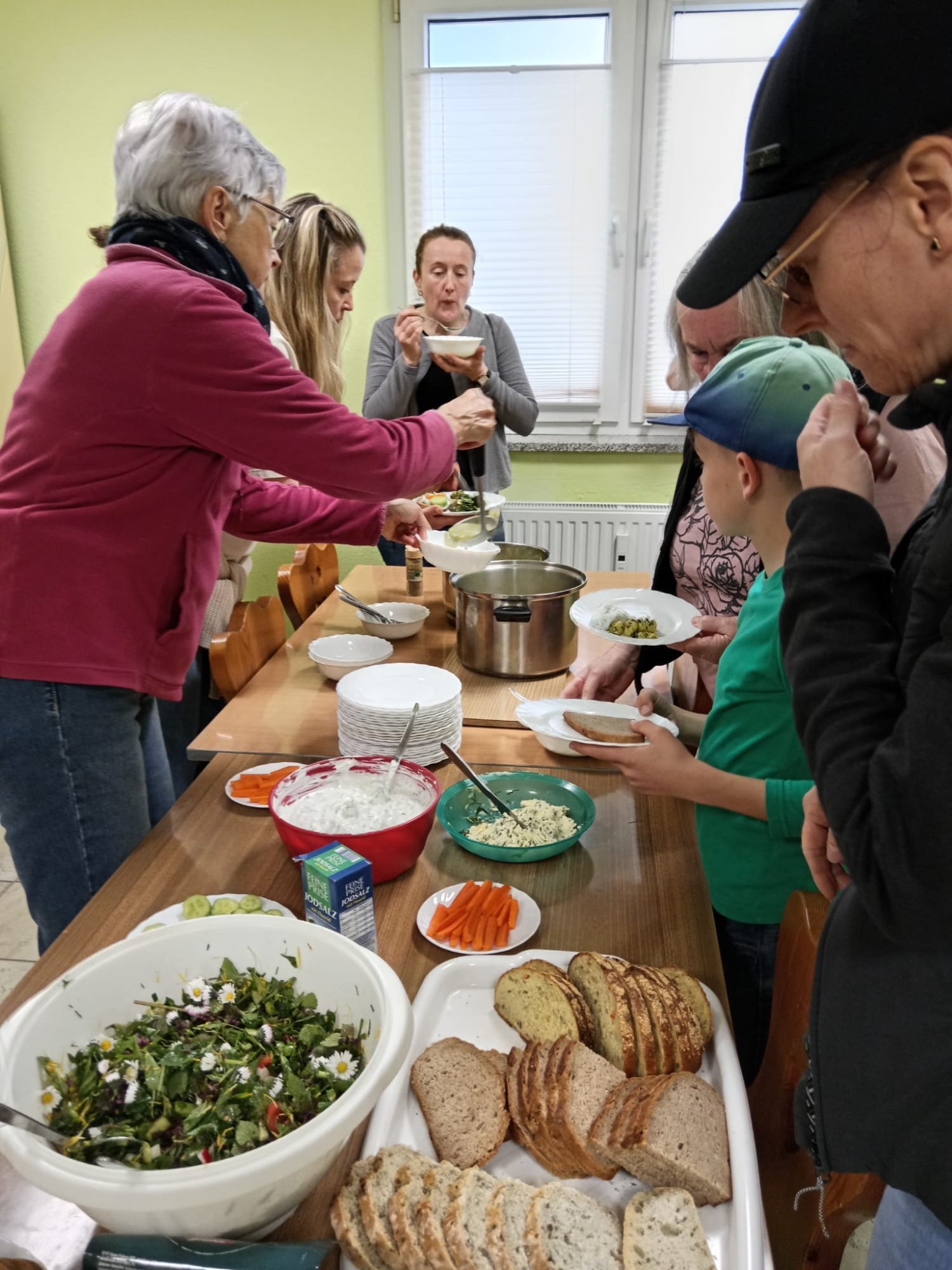 Bei wunderschönem Wetter ging es für ca 20 Kliekener ein Stück in die Aue zum Wildkräuter (gern auch als Unkraut bezeichnet) sammeln. Im Dorfgemeinschaftshaus wurden sie zu leckerer Kräuterbutter und - quark, Brennnesselsuppe, Gnocchi mit Wildkräuterpesto, gemischten Salat und mit Kräuter und Feta gefüllte Blättefteigrollen verarbeitet und AUFGEGESSEN. Danke für euer Interesse, eure Mithilfe und eure Spenden.